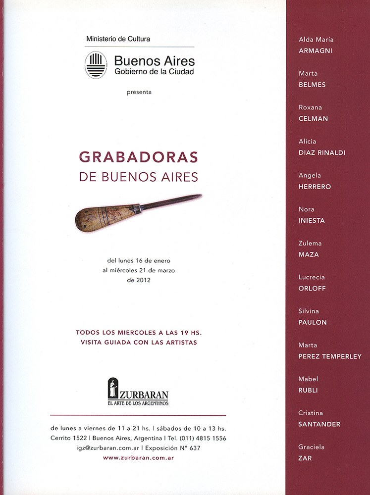 En 2012 es seleccionada para el Premio Alberto J. Trabucco de Grabado (Academia Nacional de Bellas Artes, C.C. Recoleta).